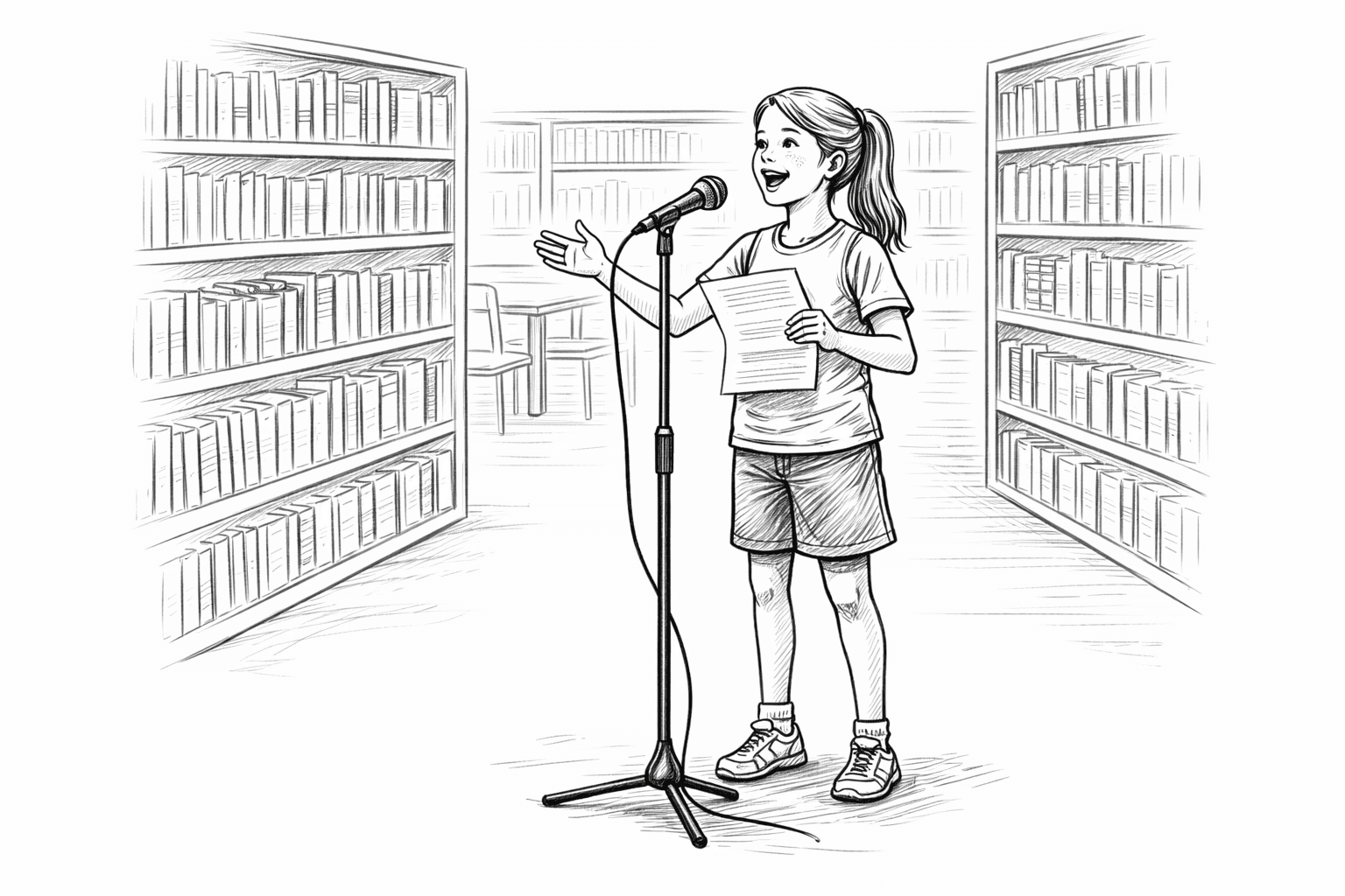 I was in 5th grade, standing in the finals of our elementary school poetry contest. They streamed it into every classroom, so the entire school watched.